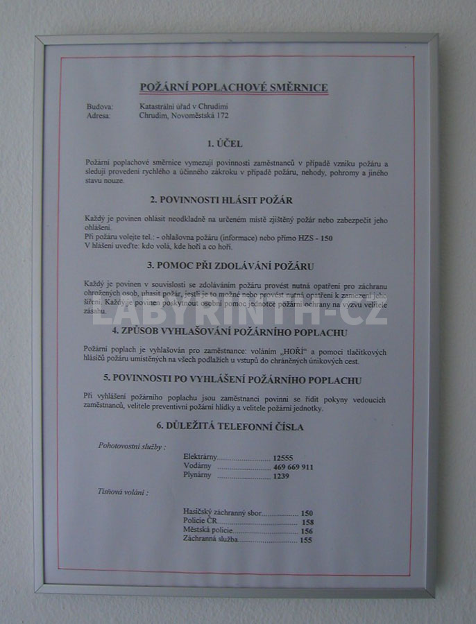 Nedílnou součástí našeho výrobního programu jsou různé cedule, štítky a další prvky orientačního a informačního systému, které používají různé bezpečnostní sbory, armáda ČR, policie ČR a hasiči (HZS). Tabulky jsou většinou hliníkové, které kromě prakticky neomezené životnosti splňují i podmínku nehořlavosti v exterémních prostředích.