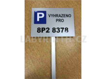 Přibývá lidí, kteří řeší zaparkování "svého miláčka" před domem nebo alespoň poblíž svého bydliště. Ale aut přibývá, parkovacích míst nikoli. Jak to vyřešit? Snadno! Na přání Vám vyrobíme tzv. "parkovací ceduli" přesně dle Vašeho požadavku. Tato informační cedule může obsahovat různé nápisy, symboly odtahu nebo přímo vaši registrační značku. Vy si ji pak jednoduše zapíchnete nebo zabetonujete na místo, které chcete mít vyhrazeno pouze pro svoje auto.
