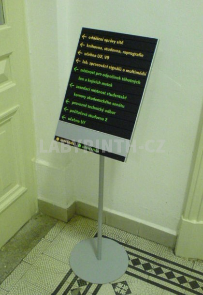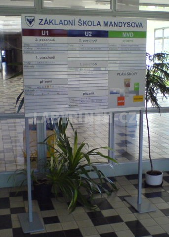 Také různé stojany a stojánky, jako vhodný doplněk orientačních systémů, slouží k umisťování různých informací (plakáty, letáky, informace…). Ty jsou však většinou volně přístupné (nejsou uzamykatelné) a tudíž používané převážně v interiérech. Vyrábíme též stojany „vyklapávací“, které obsahují krycí antireflexivní fólií (slídu) proti poškození nebo odcizení podkladové grafiky.