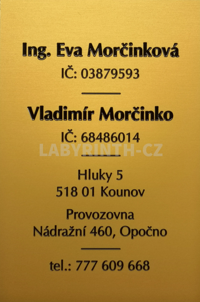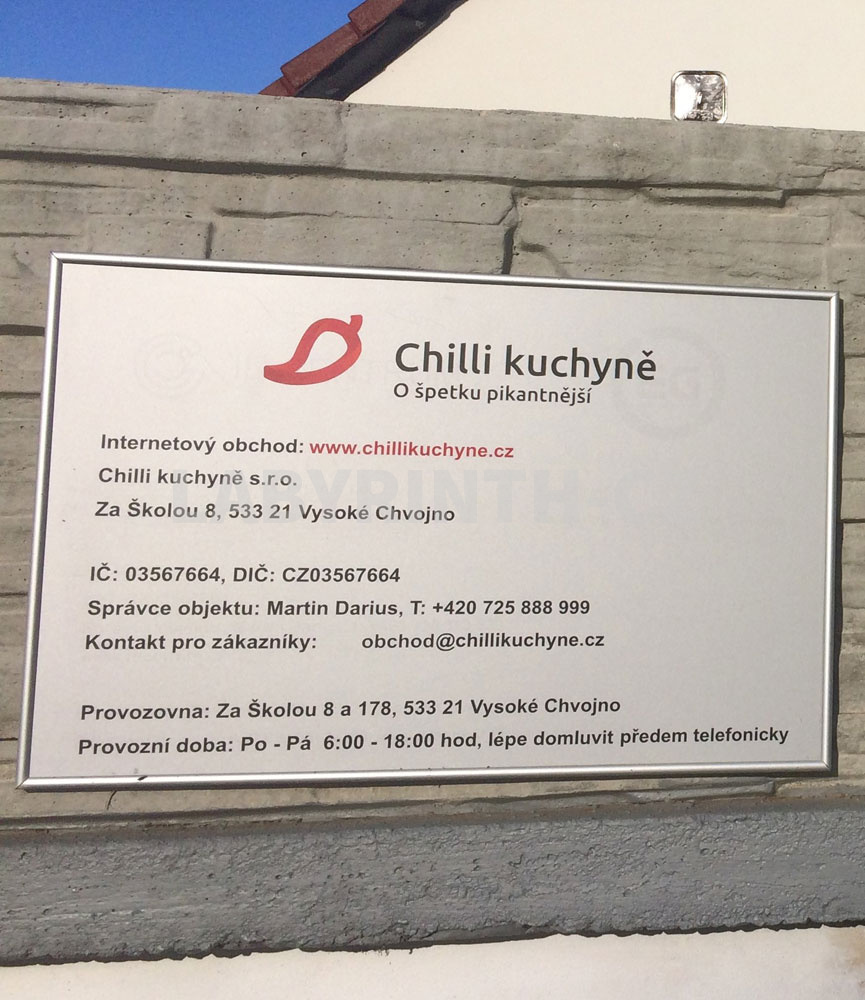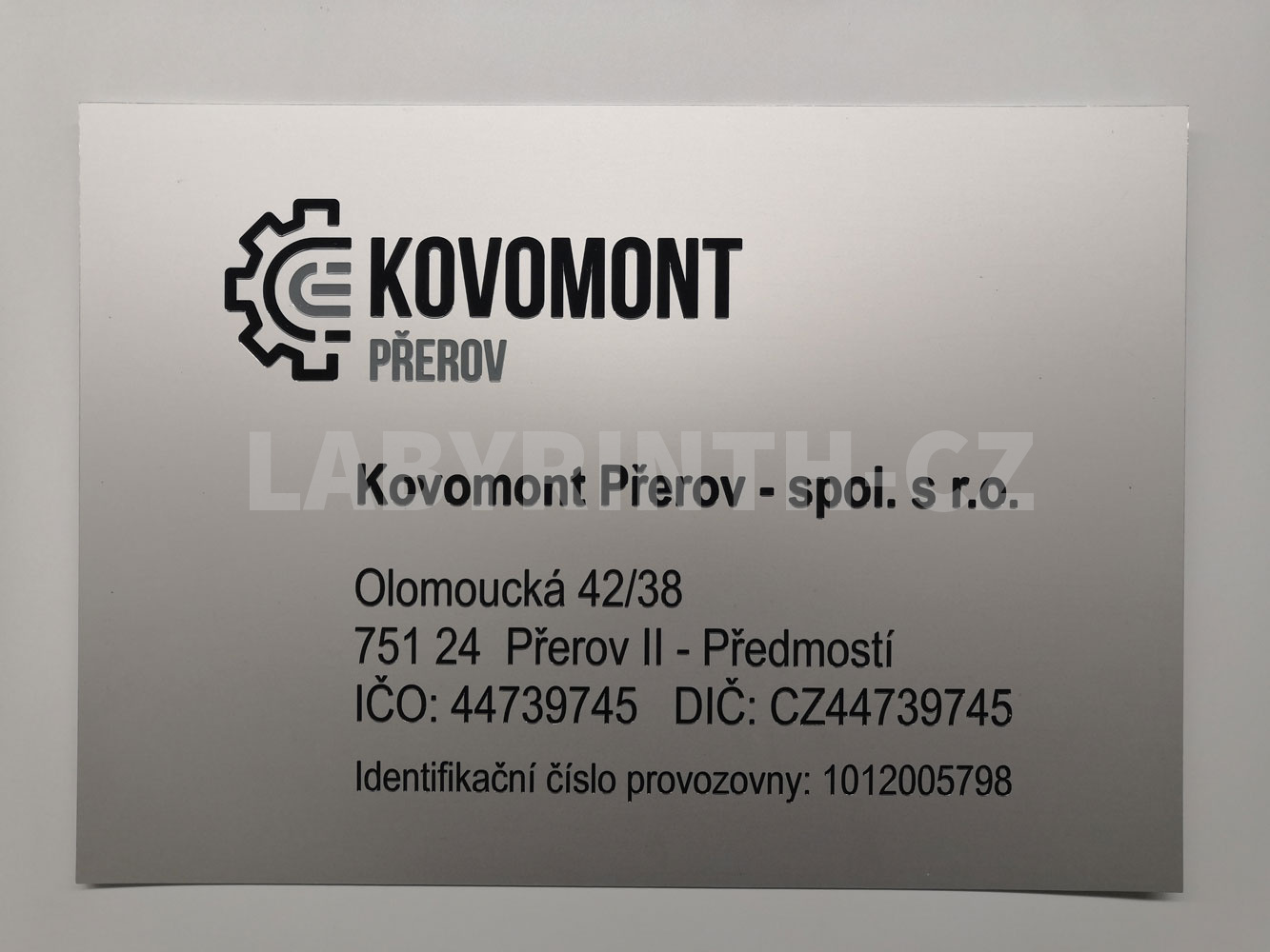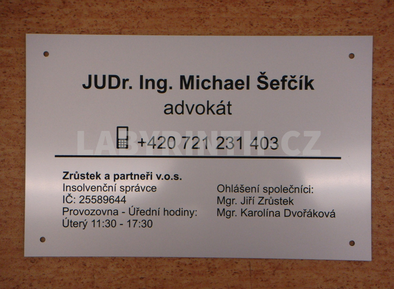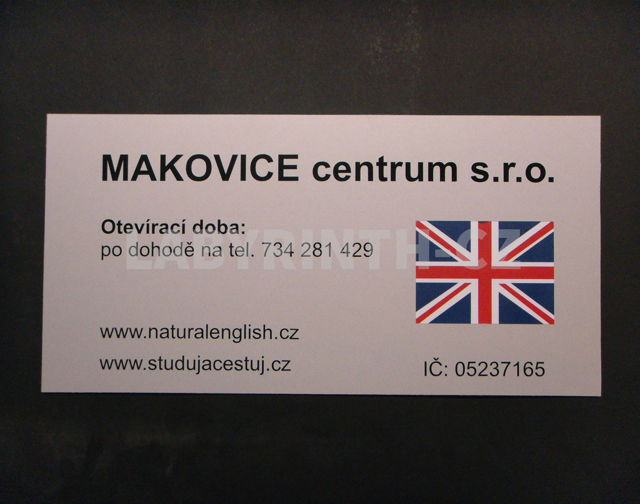 Každá firma, společnost nebo instituce musí být ze zákona označená. K tomuto účelu vyrábíme různé cedule, štítky, informační tabule a firemní cedulky, které splňují příslušný Živnostenský zákon. Cedule lze umístit na budovu, na zeď nebo na plot.