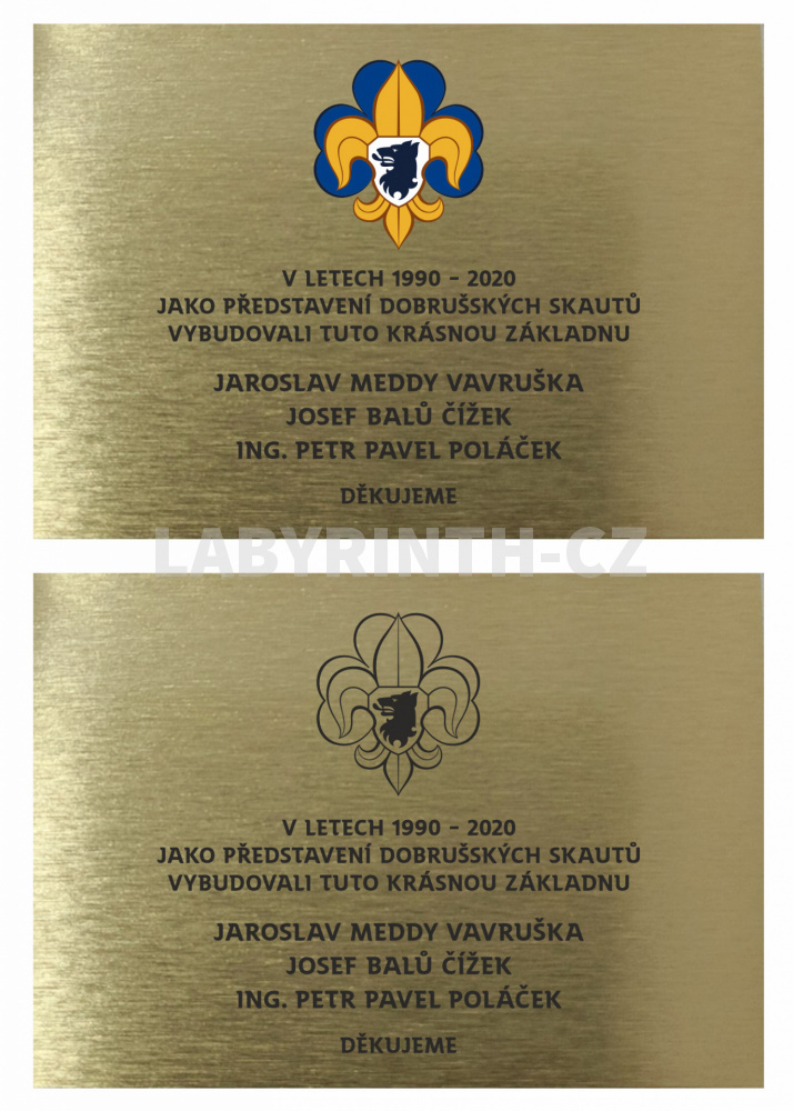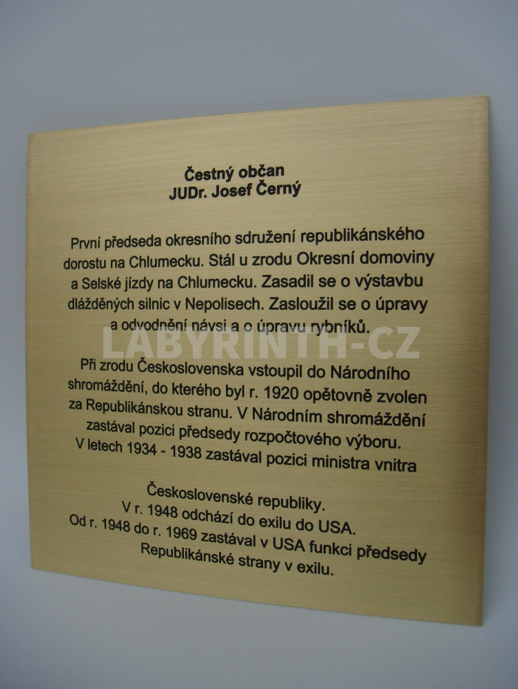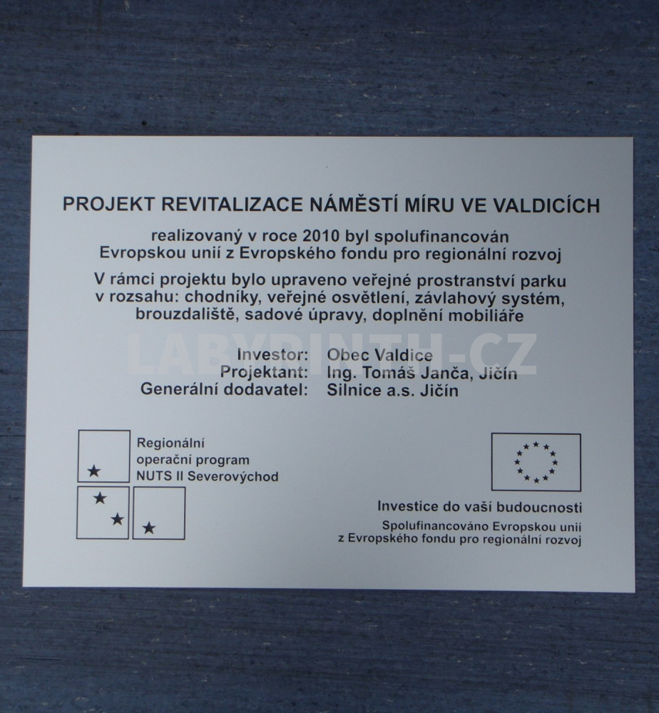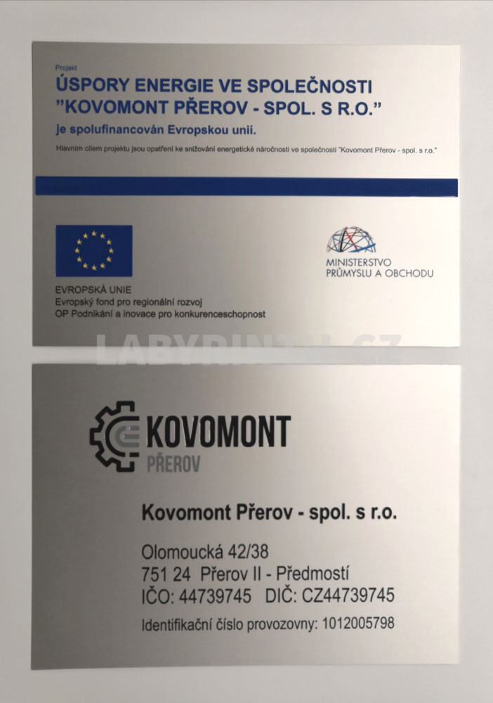 S označeným projektem (při financování např. z dotací EU), základním kamenem k významné stavbě, s informací při poskytnutí daru apod. se setkáváme téměř na každém kroku. Za tímto účelem vyrábíme různé cedule, informační tabule a cedulky, na nichž je uvedena např. povinná publicita. Tyto cedule vyrábíme z vysoce kvalitních materiálů (eloxovaný hliník, broušený hliník, nerez, mosaz apod...). Uplatnění najdou v exteriéru i v interiéru.
