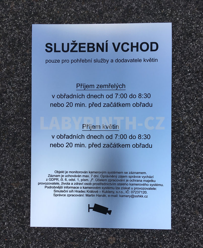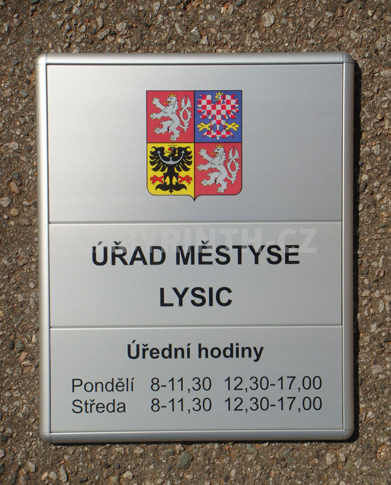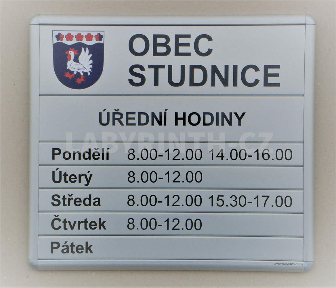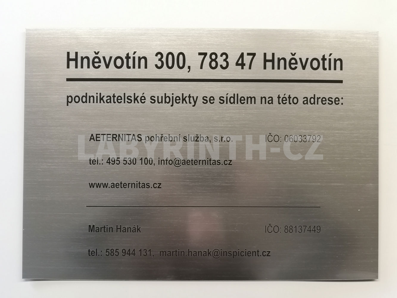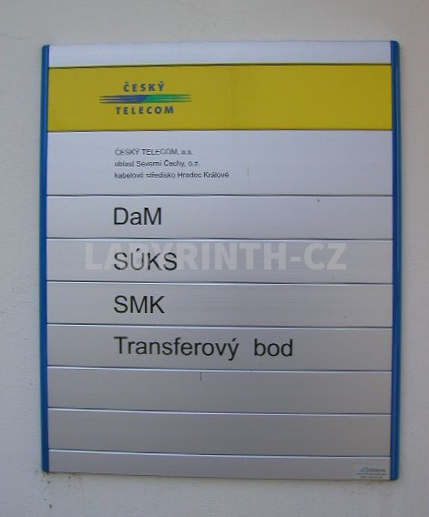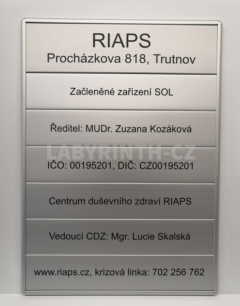 i grafika opravitelné. Jednotlivé „řádky” se u všech informačních tabulí dají snadno zaměňovat za jiné, prohazovat, měnit jejich pořadí nebo doplňovat o nové. Pokud je potřeba starý text nahradit novým (např. do budovy nebo do areálu přibude nová firma), starý nápis se opatrně odstraní (sloupne) a místo něj se nalepí nový. Každá takováto změna u všech námi vyráběných informačních a orientačních tabulí a cedulí je snadná, rychlá a navíc s minimálními náklady, neboť původní hliníková konstrukce zůstává beze změny.
