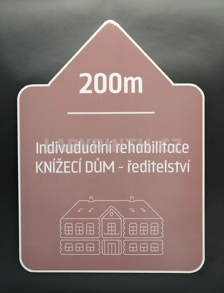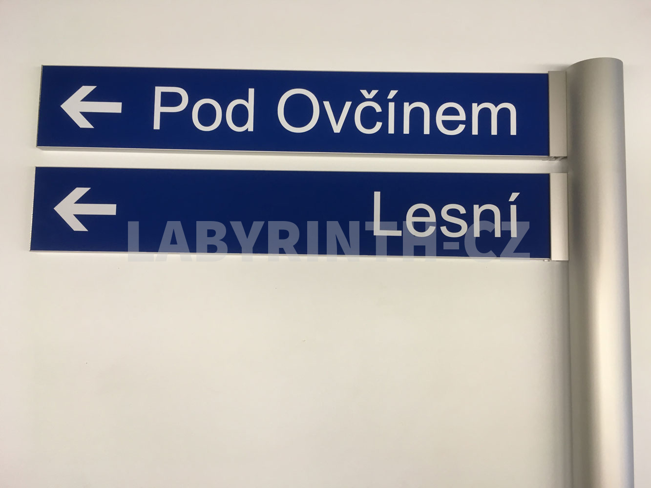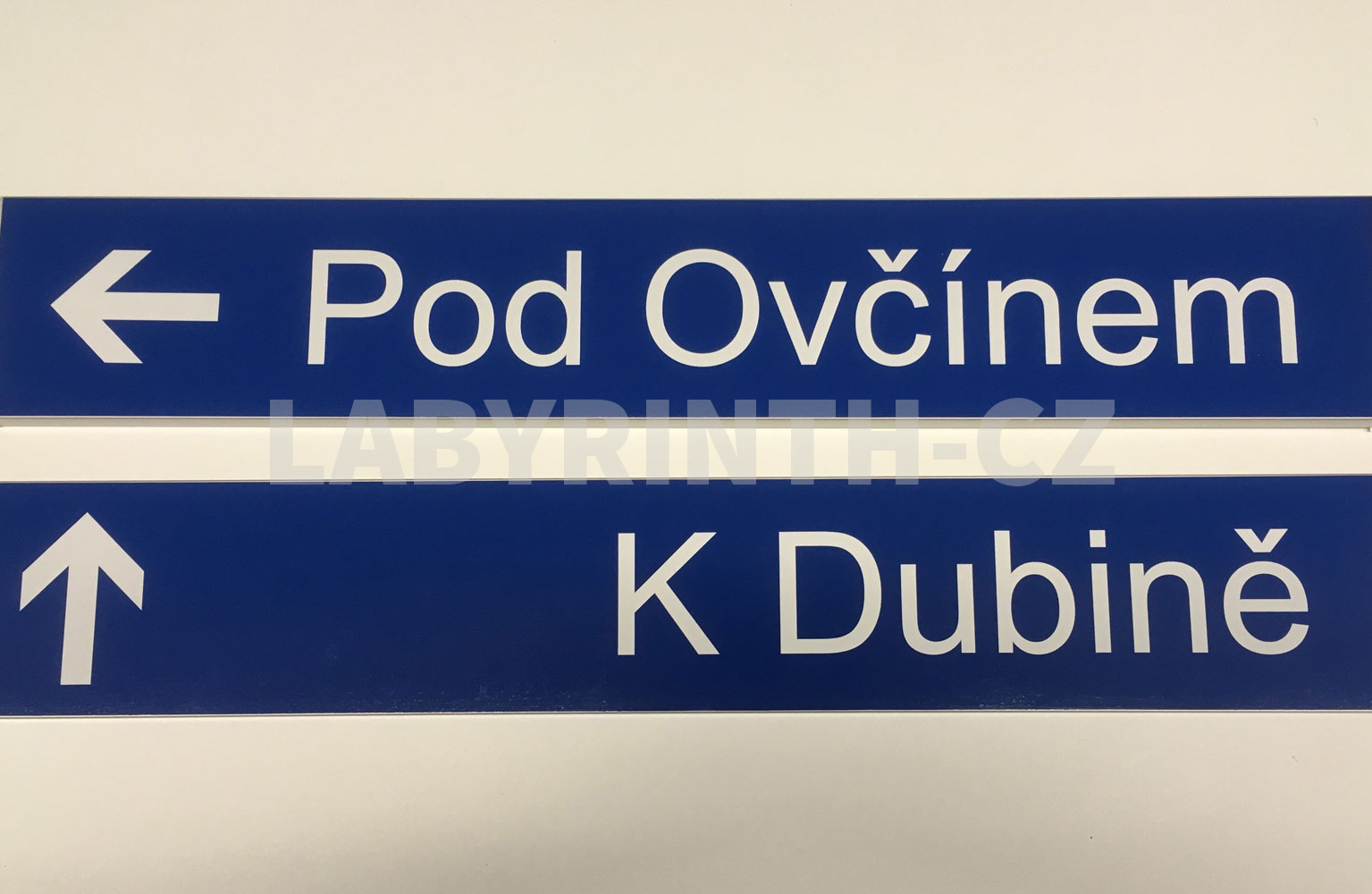 V tomto provedení vyrábíme různé směrovky, informační tabule, orientační a navigační cedule nebo cedulky se šipkou, vč. označení firem, ulic, dočasných nebo stálých akcí apod. Navigační směrovky „přesně na míru” také bývají nedílnou součást městského mobiliáře.