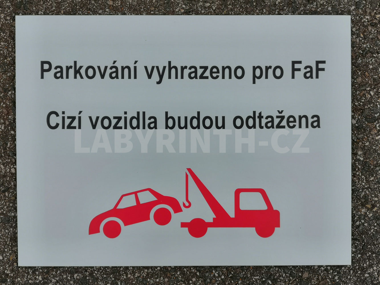Naší specialitou je výroba cedulí na míru: umíme vyrobit různé tvary, rozměry, barvy apod. V tomto duchu vyrábíme i různé informační tabule, orientační a navigační cedule po parkovišti nebo cedulky k označení firemního parkování. Oblíbenými parkovacími cedulemi jsou ty, které obsahují výměnnou část. Do tohoto prostoru se snadno vkládá registrační značka parkujícího, název nebo logo firmy nebo různé údaje dle vaší potřeby. Základní konstrukce takovéto cedule zůstává nezměněná a tím šetří vaše peněženky i čas.