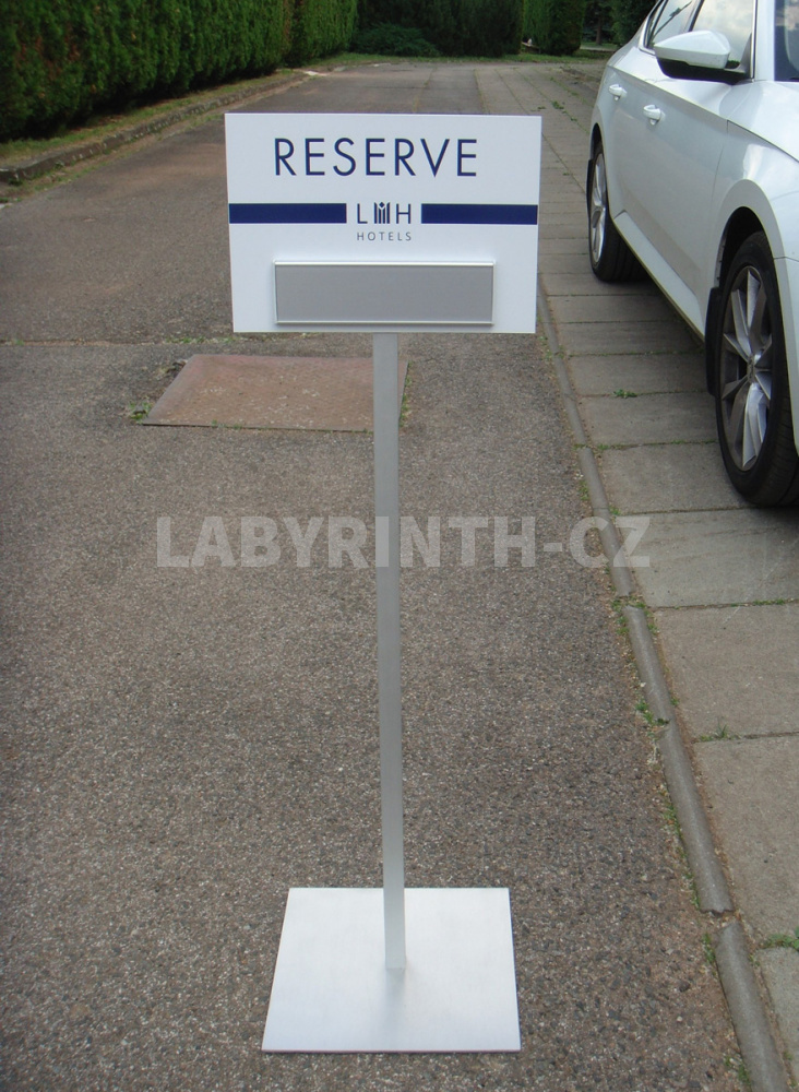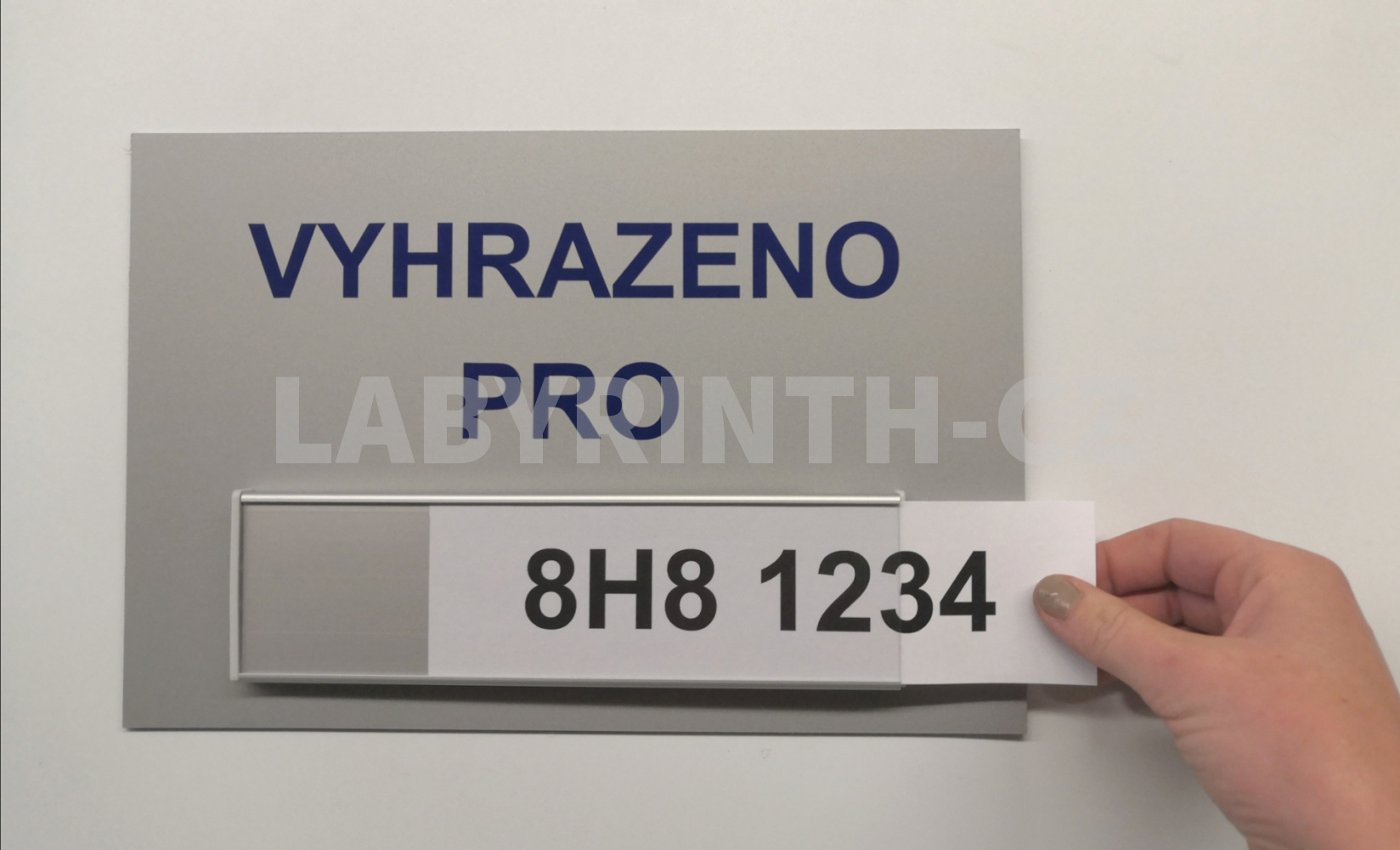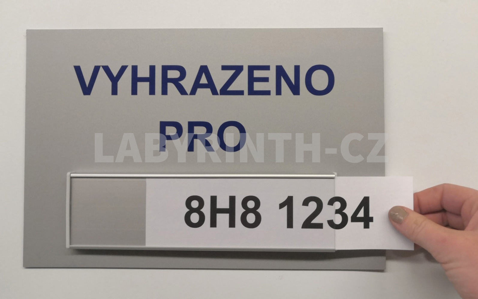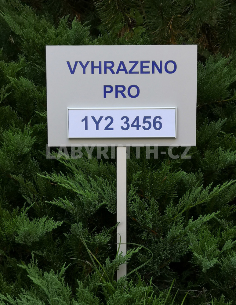 Parkovací informační cedule, vyhrazené místo pro parkování (cedule vyhrazené parkovací místo, vyhrazené parkování a stání, s výměnnou RZ (SPZ), cedule Reservé)