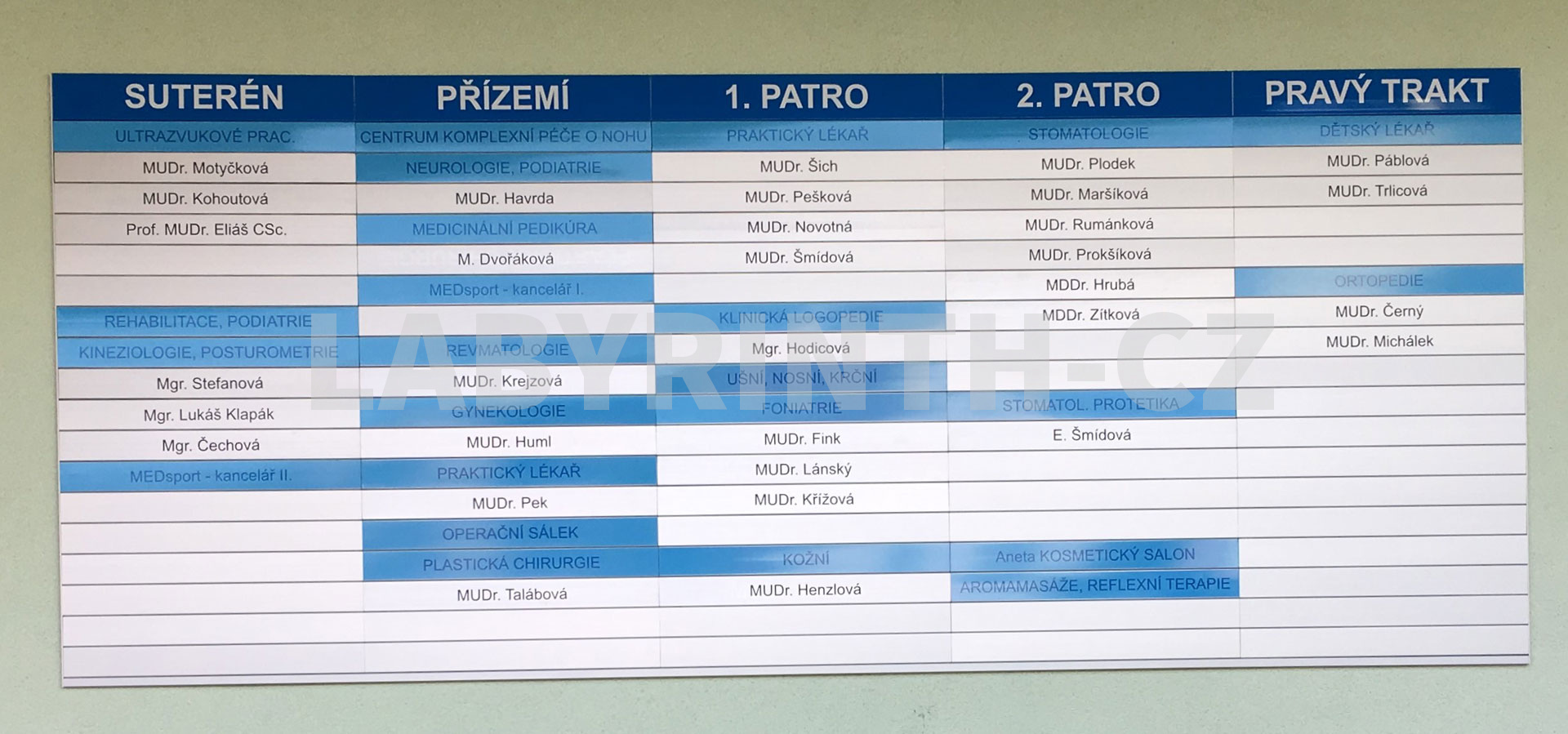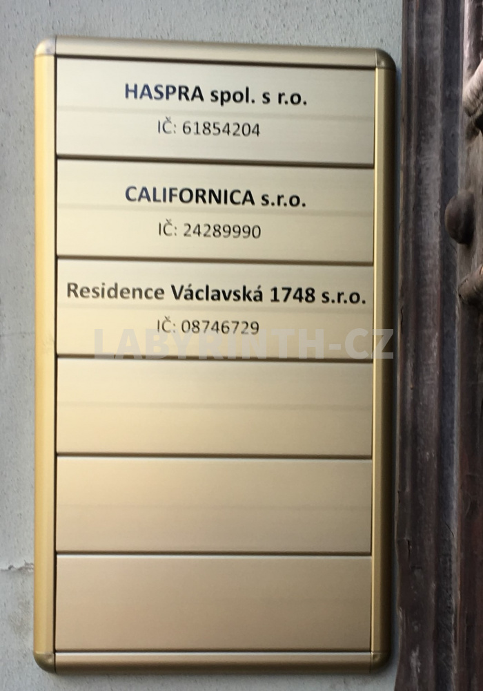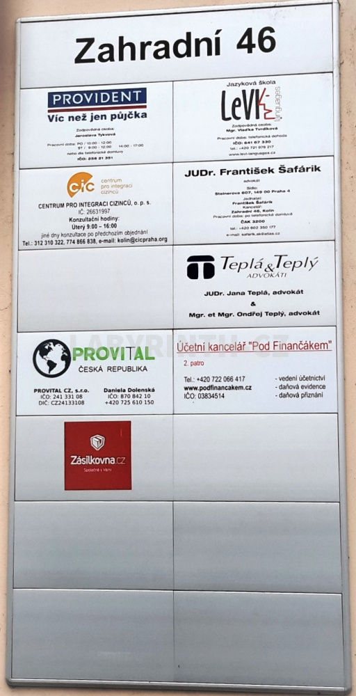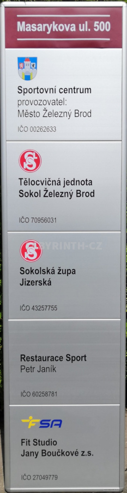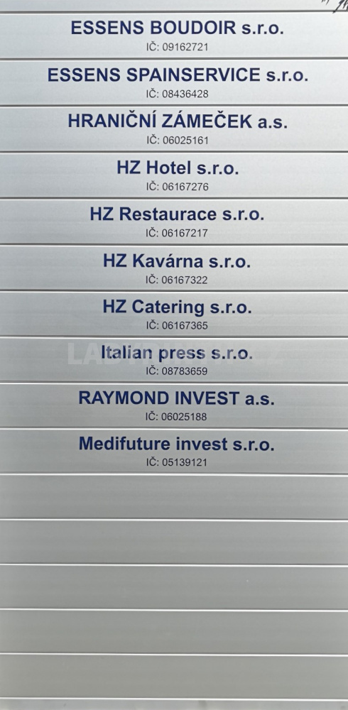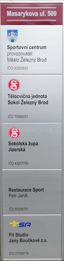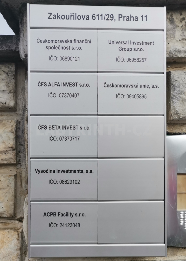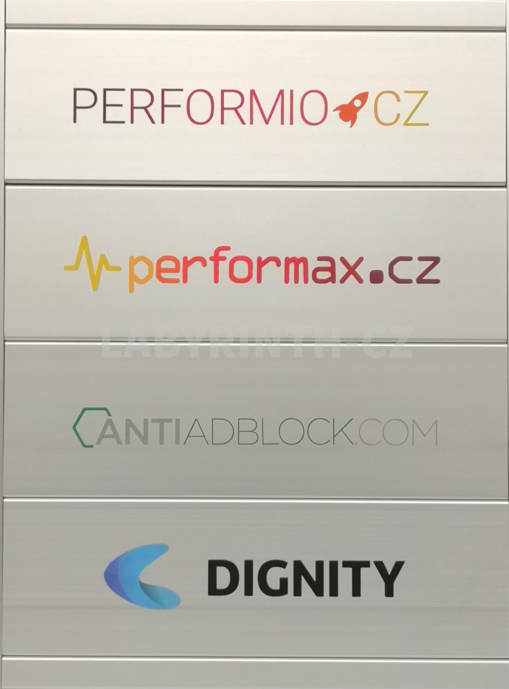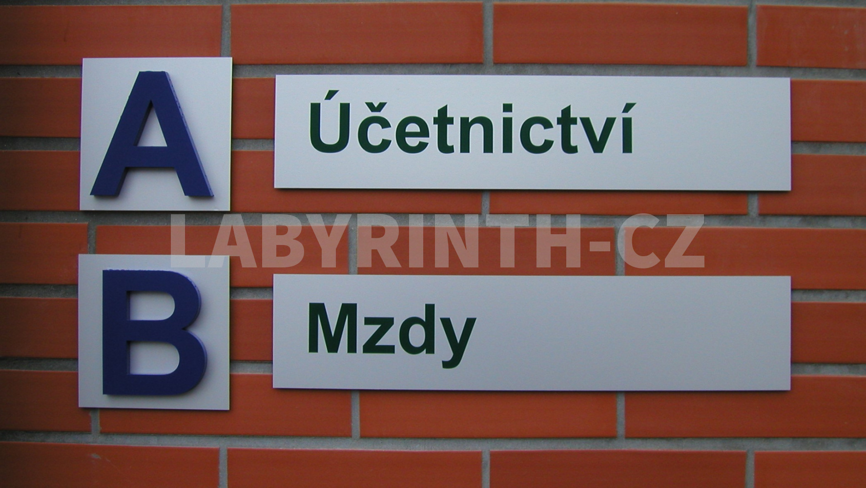 Seznam firem v budově (cedule na budovu, přehled firem v budově, označení sídel firem)