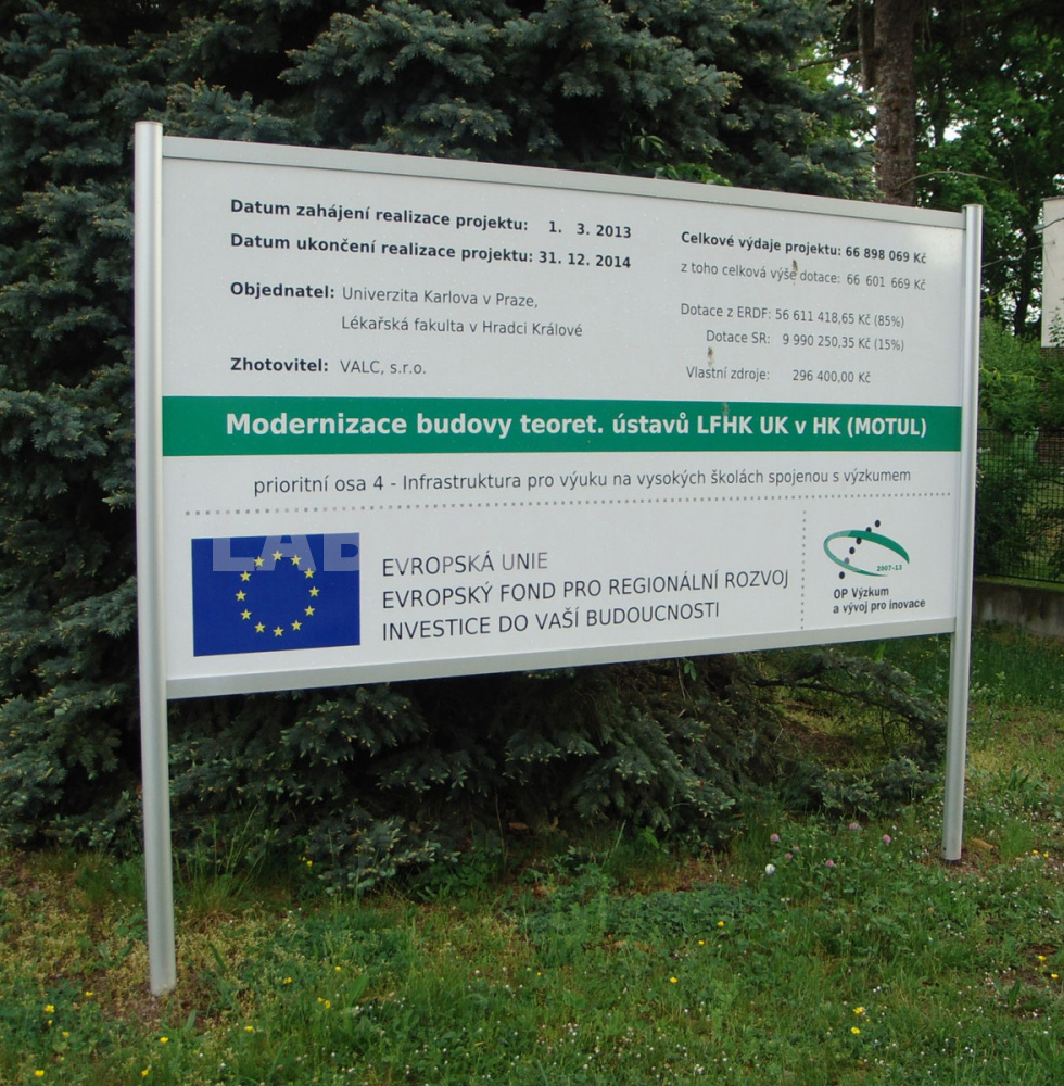 Ostatní venkovní značení (označení projektu EU, povinná publicita / dotační program, označení základního kamene, atypické cedule a materiály, jiné...)