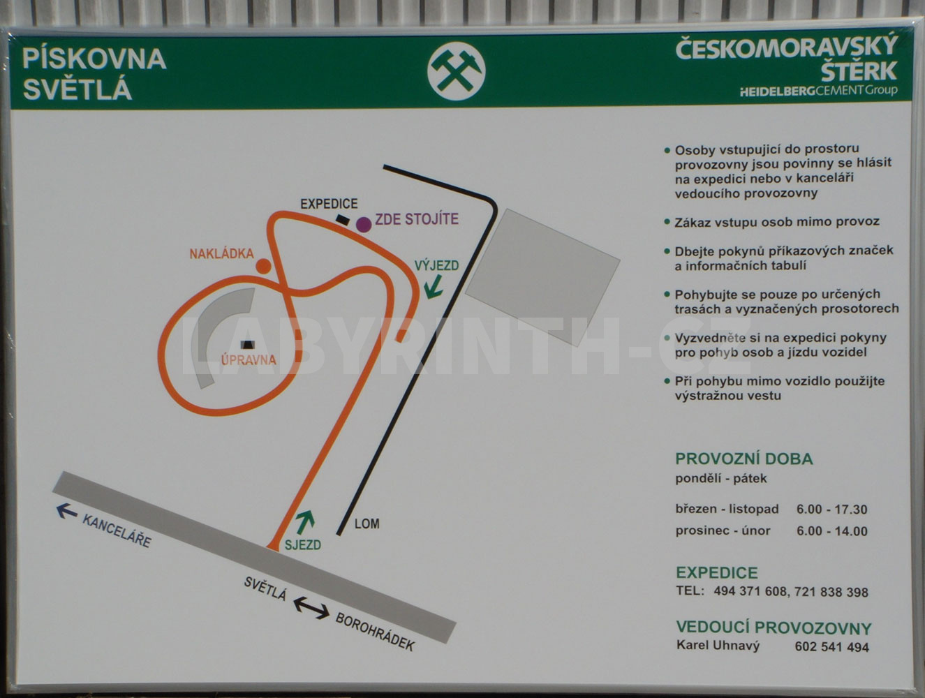 Plány areálů, mapy (schéma areálu, cedule do země, mezi budovy, do exteriéru)