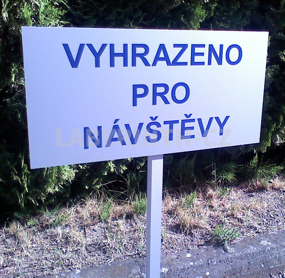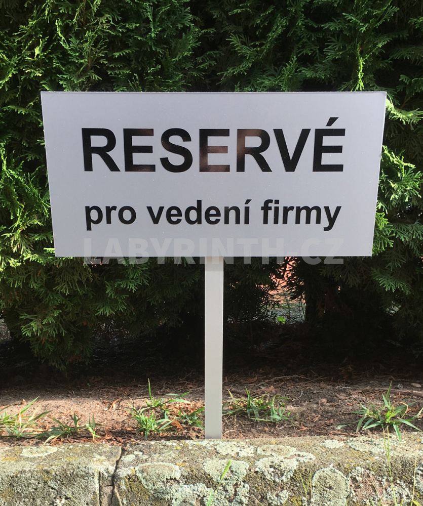 Hojně používaným typem cedulí jsou informační tabule vyznačující parkovací místo neboli rezervované místo pro parkování a vyhrazené stání. Tyto informační cedule mohou být zabetonované, zapíchnuté do trávy, přilepené na fasádu domu nebo volně postavené. Použitým materiálem je hliník nebo nerez. Díky tomu jsou informační tabule vysoce kvalitní, elegantní, reprezentativní a navíc s vysokou životností. Tyto informační cedule s vyhrazeným privátním parkováním se zároveň stávají i vaší skvělou vizitkou pro parkující. S použitým logem jsou tyto cedule zároveň i reklamou pro vaši firmu.