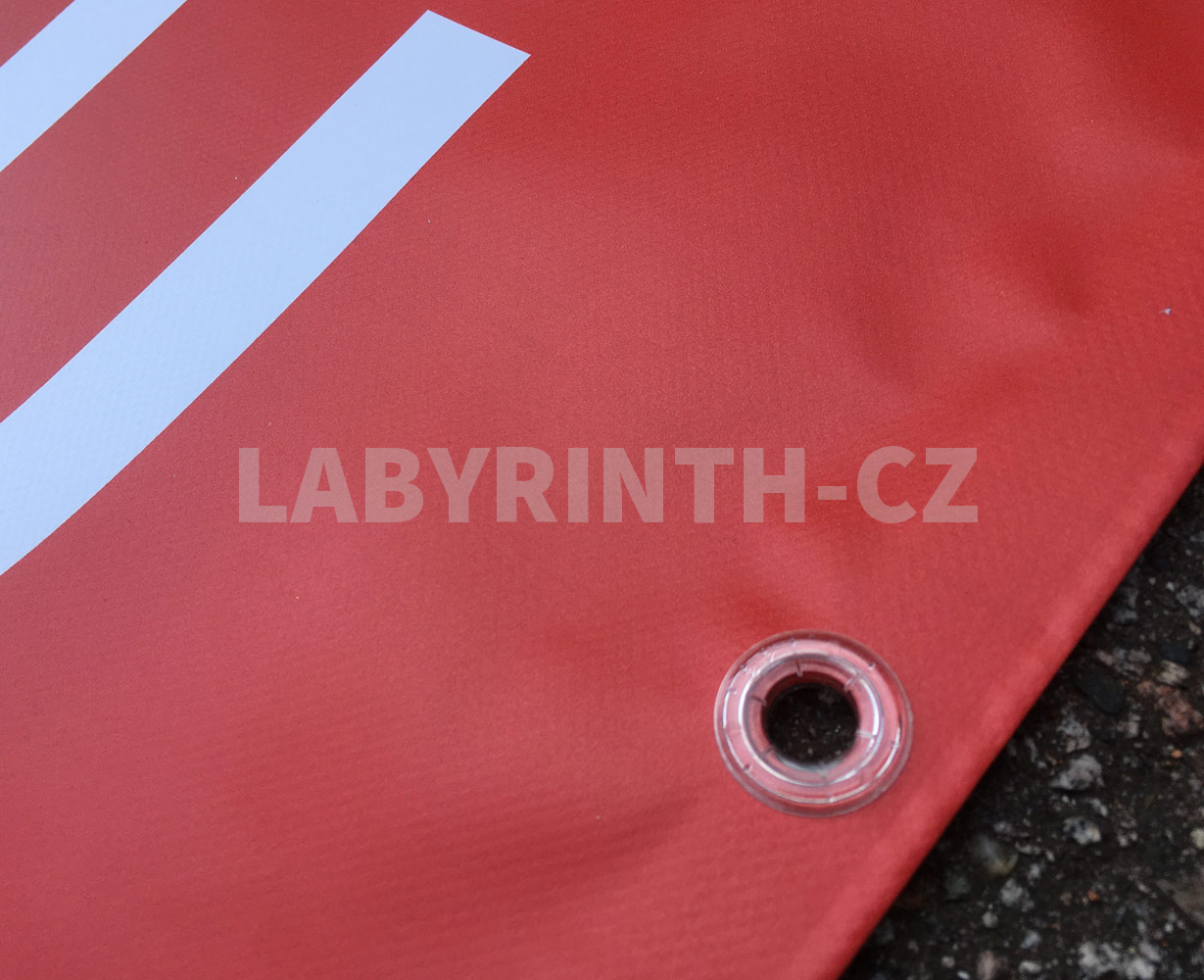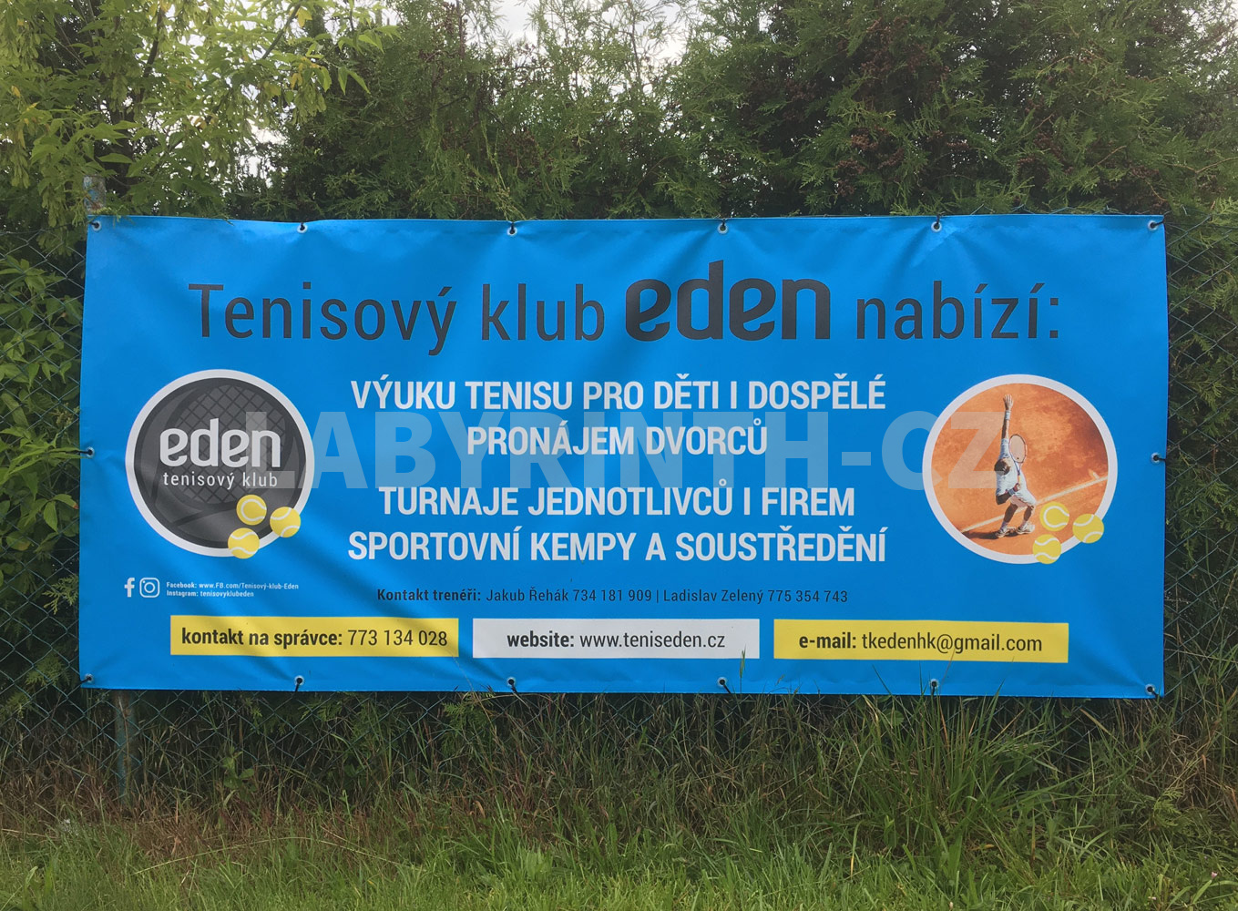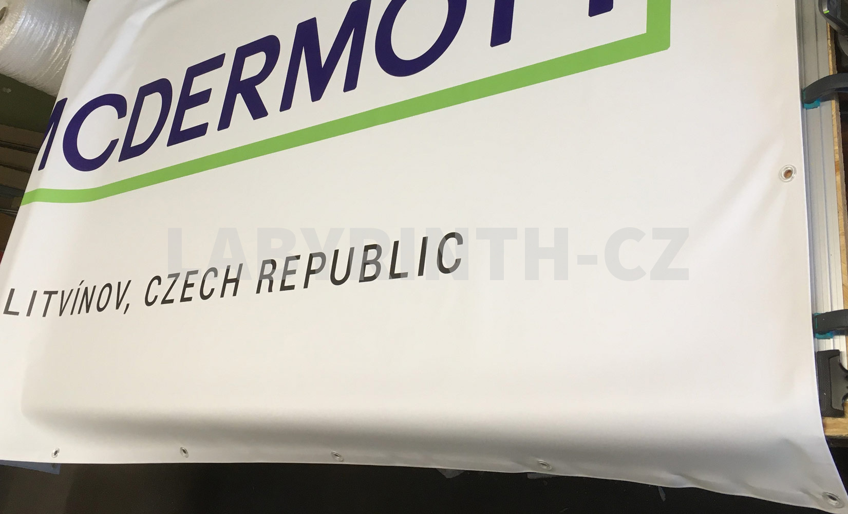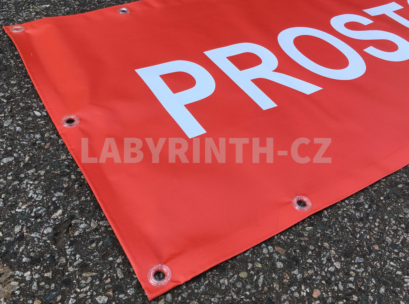 Pro umístění dočasných informací v exteriéru ideálně poslouží tzv. bannery (plachty s oky) na zavěšení. Pomocí ok, které jsou po celém obvodu, se tyto speciální „informační tabule” velice snadno zavěšují na fasády budov, na ploty, mezi sloupky apod. Závěsná oka lze použít čirá, takže nenarušují celkový vzhled plachty. Okraje bannerů jsou vždy dvojité, aby se maximálně prodloužila životnost a oka se při silnějším větru nevytrhla.