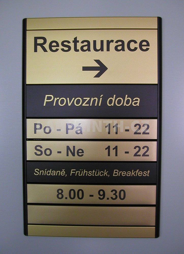 Díky použitému materiálu (eloxovaný hliník) je označení vaši provozovny vysoce kvalitní, elegantní, reprezentativní a navíc