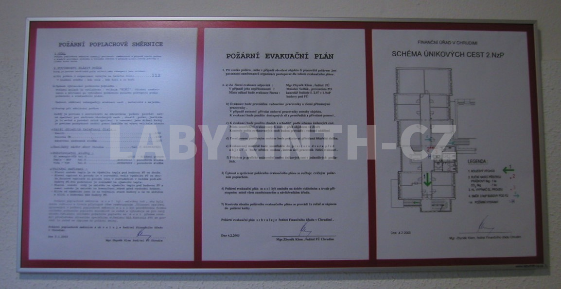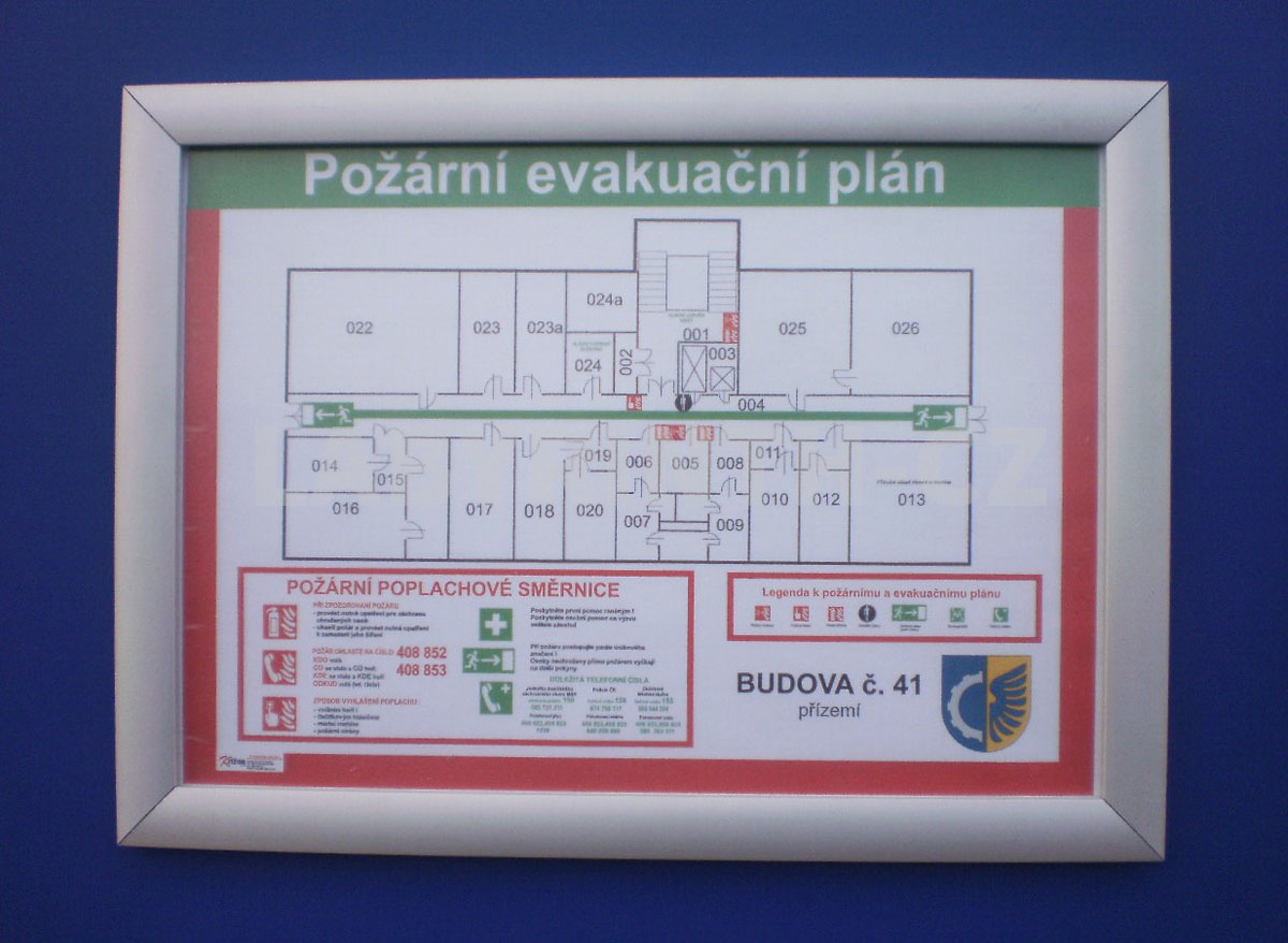 Každá instituce by dnes měla mít vypracovaný Corporate Identity plán. Nejčastěji vyrábíme ze stříbrného eloxu (neoxiduje, je stálobarevný) a plně koresponduje se všemi prvky našeho orientačního systému. Navíc je nehořlavý, nerozbitný a přitom snadno rozebíratelný - texty jdou snadno aktualizovat, výměna se provádí ručně nebo pomocí obyčejného šroubováku a zvládne ji i naprostý laik. Místo skla používáme antireflexivní fólii, takže text je i z úhlu dobře čitelný (neleskne se) a navíc při náhodném pádu nehrozí zranění o střepy.