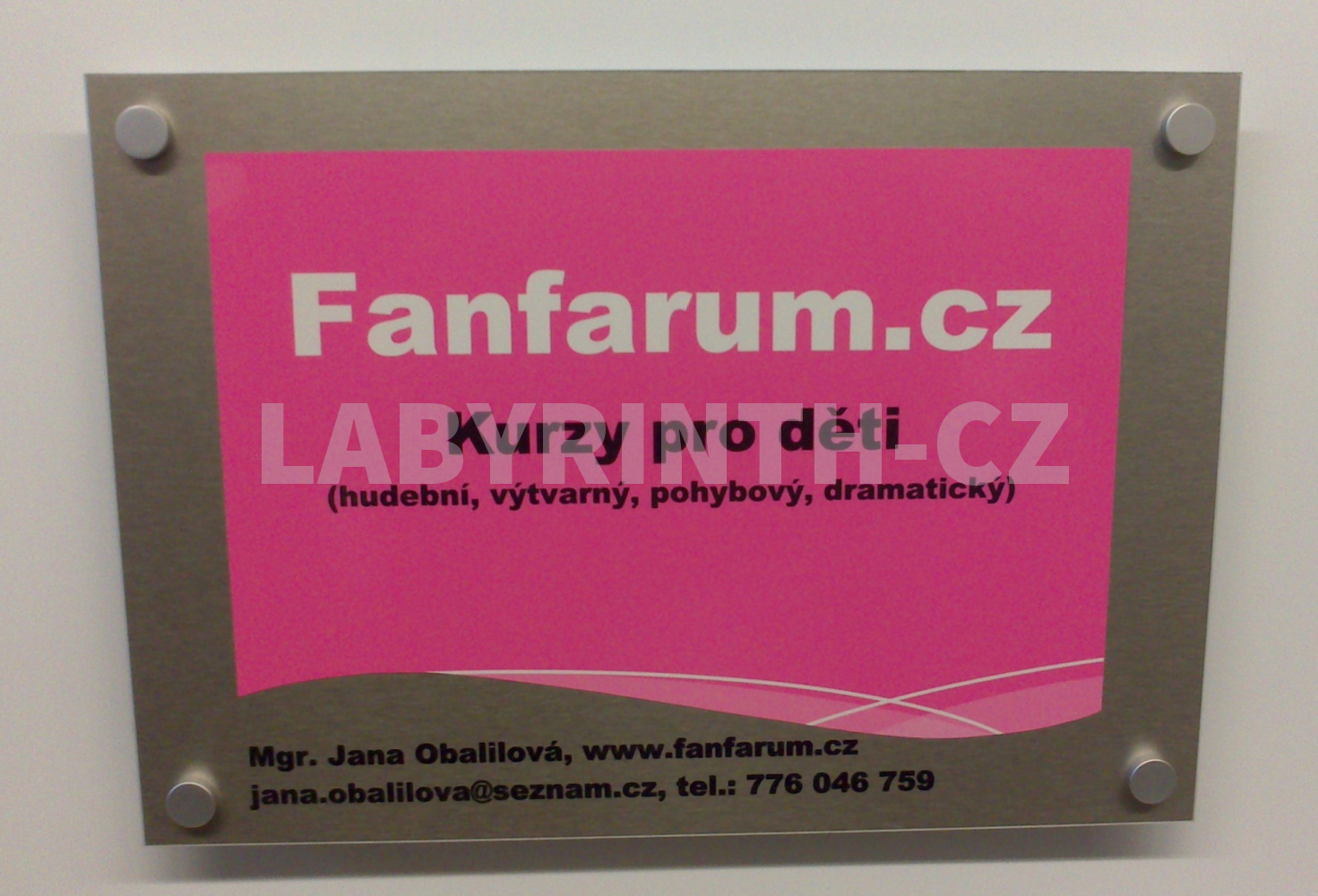 Označení firmy, hliník s bronzovým dezénem, nelamelové provedení (cedule na budovu)