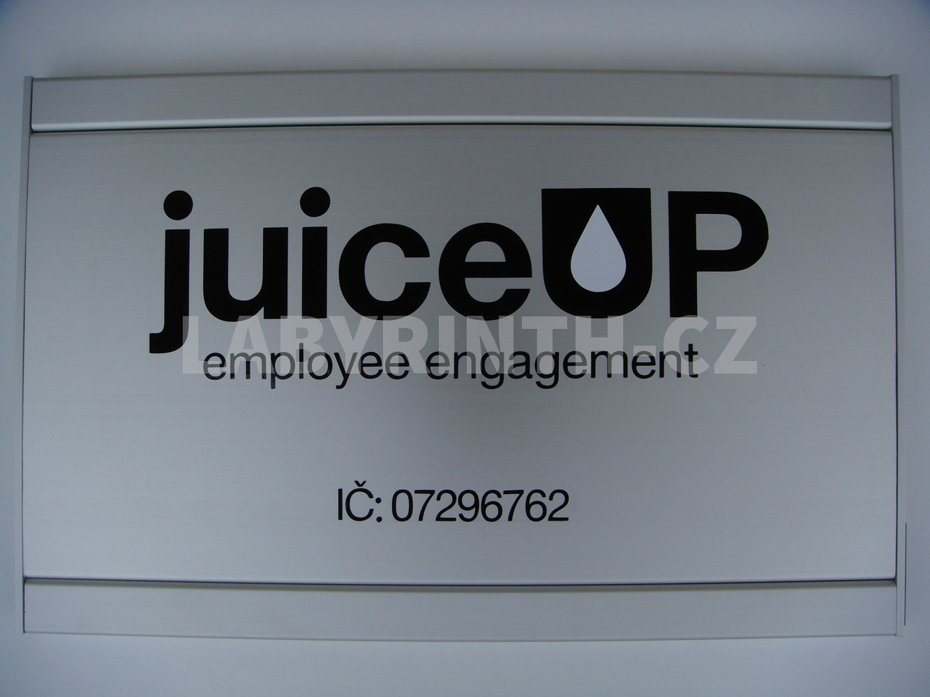 Označení firmy, stříbrný broušený hliník, nelamelové provedení (cedule na budovu)