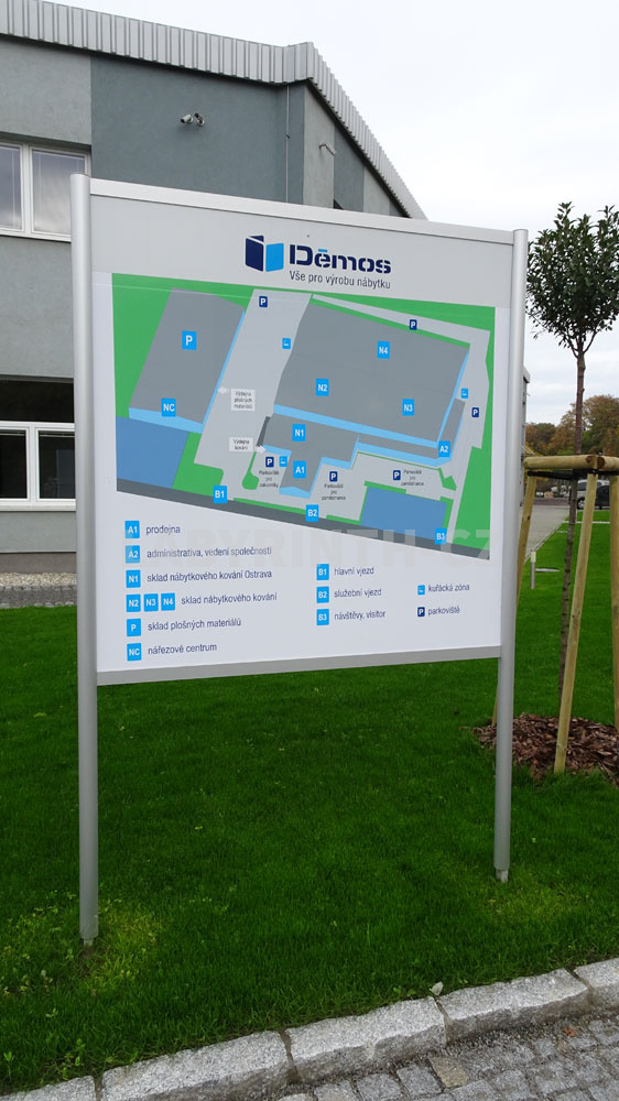 i grafika opravitelné. Jednotlivé „řádky” se u všech informačních tabulí dají snadno zaměňovat za jiné, prohazovat, měnit jejich pořadí nebo doplňovat o nové. Pokud je potřeba starý text nahradit novým (např. do budovy nebo do areálu přibude nová firma), starý nápis se opatrně odstraní (sloupne) a místo něj se nalepí nový. Každá takováto změna u všech námi vyráběných informačních a orientačních tabulí a cedulí je snadná, rychlá a navíc s minimálními náklady, neboť původní hliníková konstrukce zůstává beze změny.