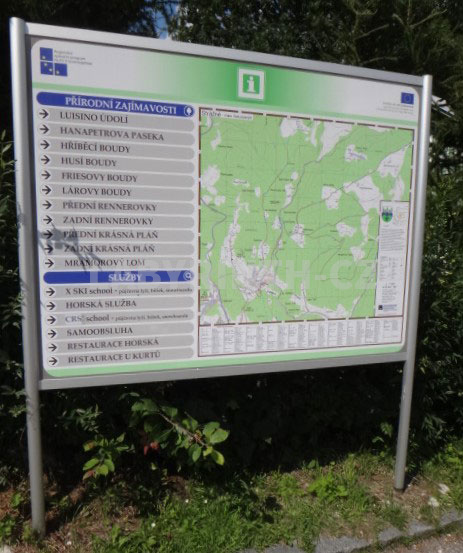Dále vás tyto orientační tabule a rozcestníky pomocí šipek snadno nasměrují do místa, které hledáte.